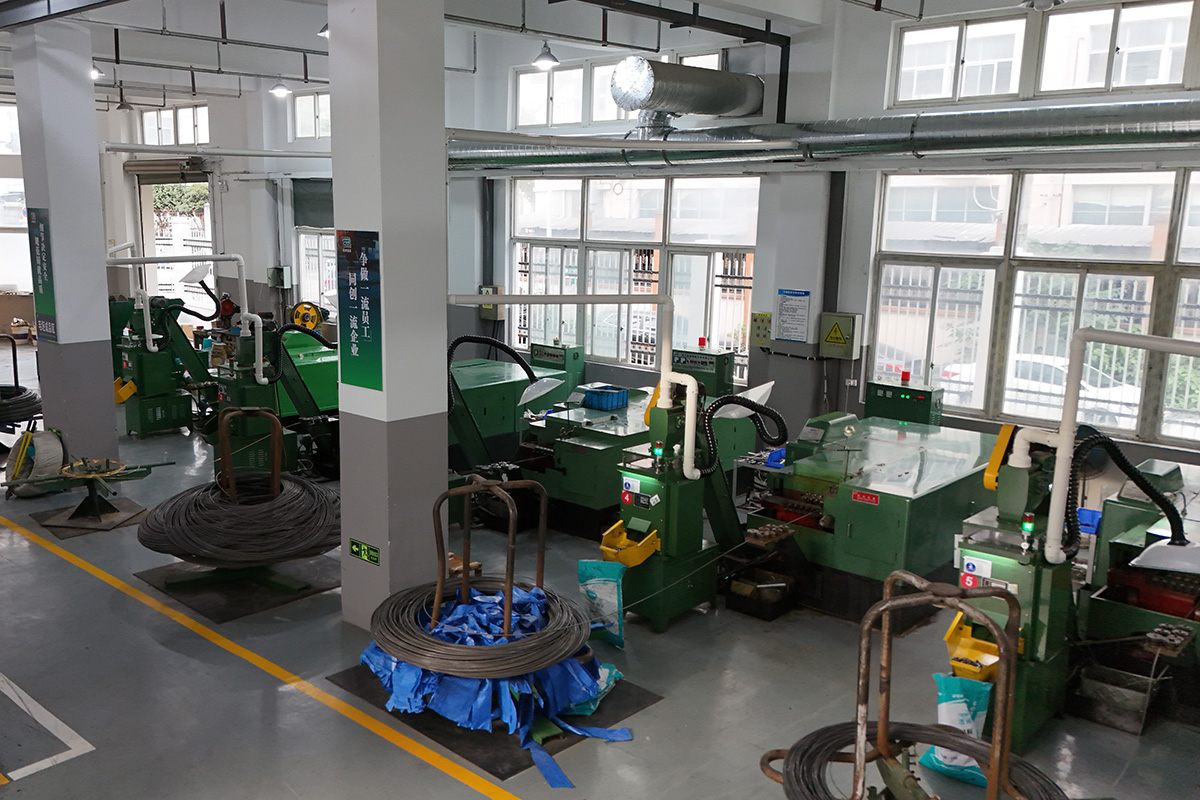 Our factory is equipped with over 100 production machines—including Taiwan multi‑station nut and screw cold‑heading machines, progressive high‑speed stamping presses and CNC automatic turning systems—enabling full in‑house processes such as wire drawing, cold heading, forging, heat treatment, machining, stamping and zinc‑alloy die‑casting.