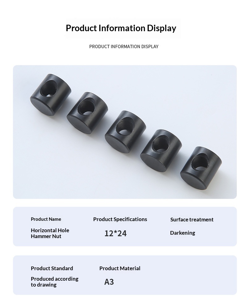 Choose our cross hole hammer nut, cylinder nut and single hole nut for a versatile, high-quality fastener solution. With material versatility, personalized customization, and global industry compatibility, they streamline production processes, reduce assembly complexity, and support efficient project execution—whether for small-batch customization or large-scale overseas orders.