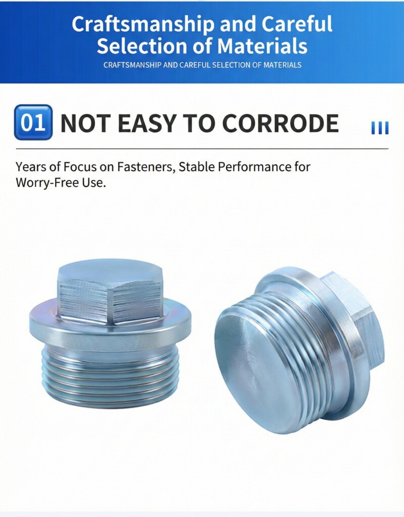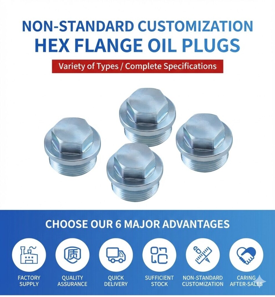 DIN910 Galvanized Medium Carbon Steel Hexagon Flange Head Plug/Oil Plug/Pipe Plug/Screw Plug (1/8″, 1/4″, 3/8″, 1/2″, 3/4″ sizes)
