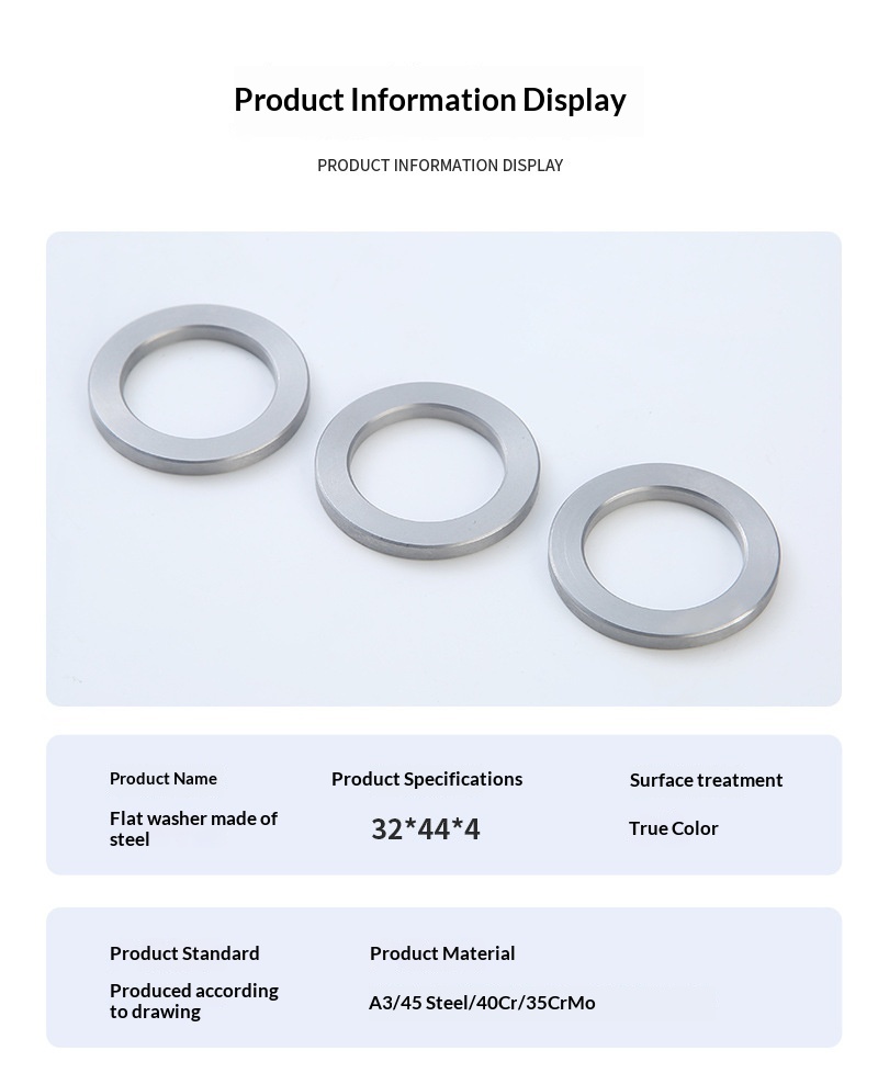With precision machining craftsmanship, our carbon steel flat washers and non-standard flat gaskets ensure high dimensional accuracy and smooth surface, suitable for long-term use in multiple industrial environments. They can effectively reduce friction, protect connecting surfaces and improve the stability and service life of mechanical components.