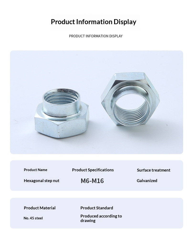 These carbon steel hex step positioning ring nuts support non-standard customization to adapt to different assembly spaces, size requirements and mechanical structures. With strong versatility and stable performance, they are suitable for global industrial customers, hardware suppliers and mechanical assembly enterprises.