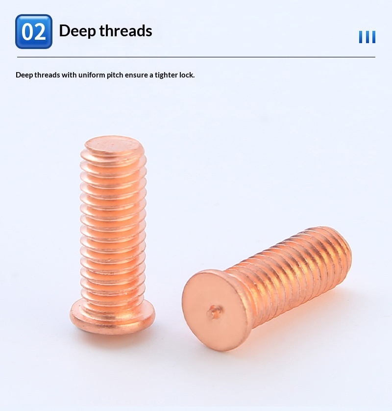Our standard welding screws are made of high-quality low-carbon steel with copper plating.