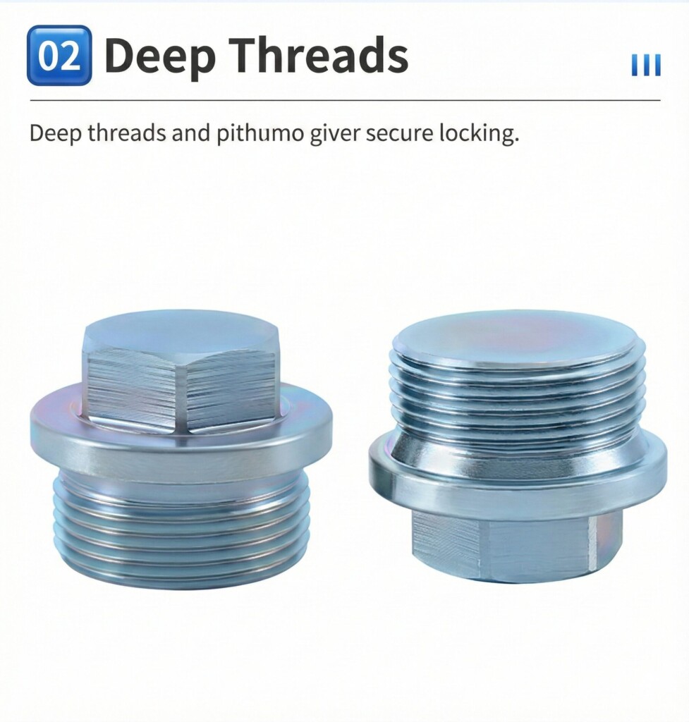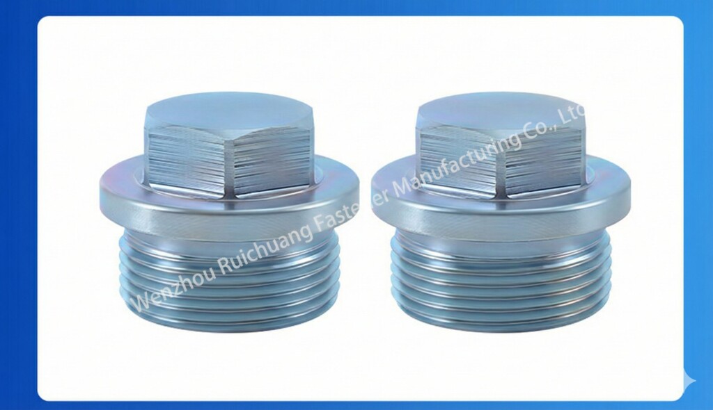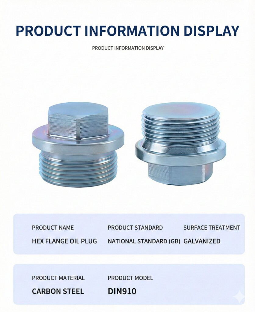DIN910 Galvanized Medium Carbon Steel Hexagon Flange Head Plug/Oil Plug/Pipe Plug/Screw Plug (1/8″, 1/4″, 3/8″, 1/2″, 3/4″ sizes)