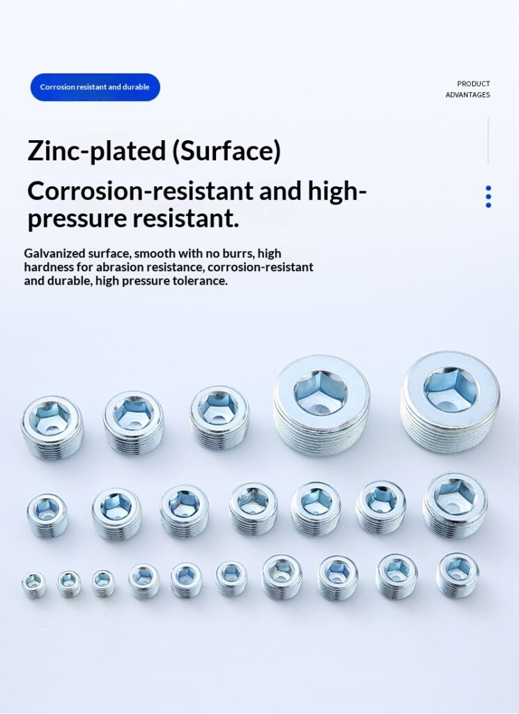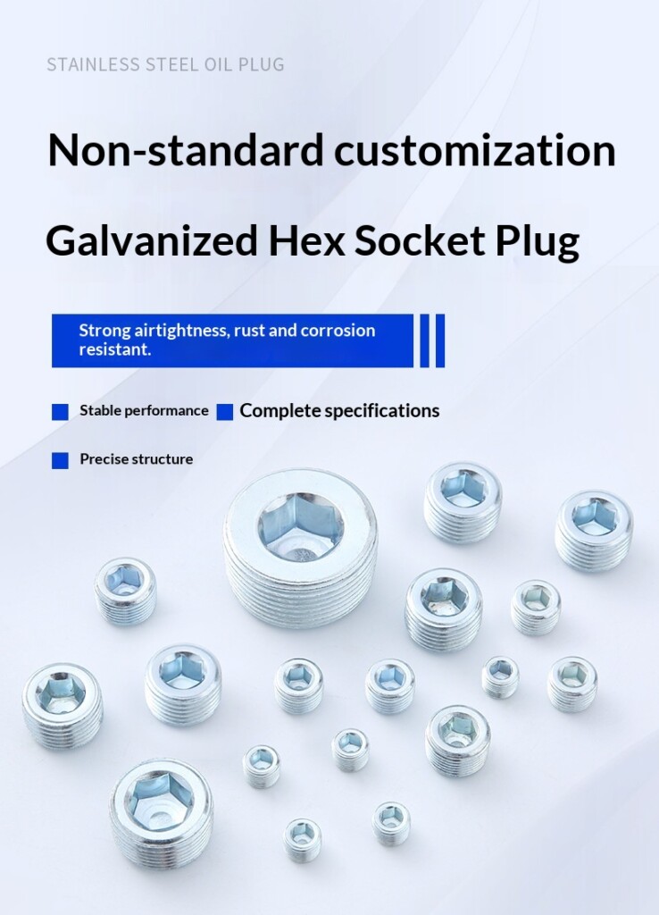 In conclusion, the Zinc-Plated Hex Socket Oil Plug is the definitive solution for industrial sealing applications that require strength, corrosion resistance, and standardized dimensions. By combining the toughness of carbon steel with the protective and aesthetic benefits of zinc plating, this component offers a level of performance that meets the demands of modern engineering. For professionals who need a reliable, cost-effective, and durable sealing solution, the Zinc-Plated Hex Socket Oil Plug is the clear choice for ensuring the integrity of their fluid systems.