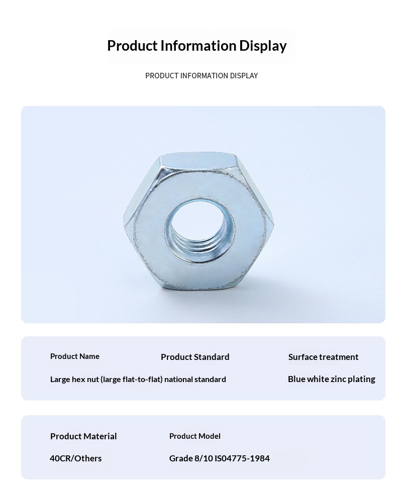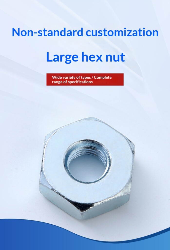 Galvanized thickened enlarged wide hex nuts are non-standard industrial fasteners widely used in mechanical assembly, construction hardware, electrical equipment, furniture installation and engineering construction industries.