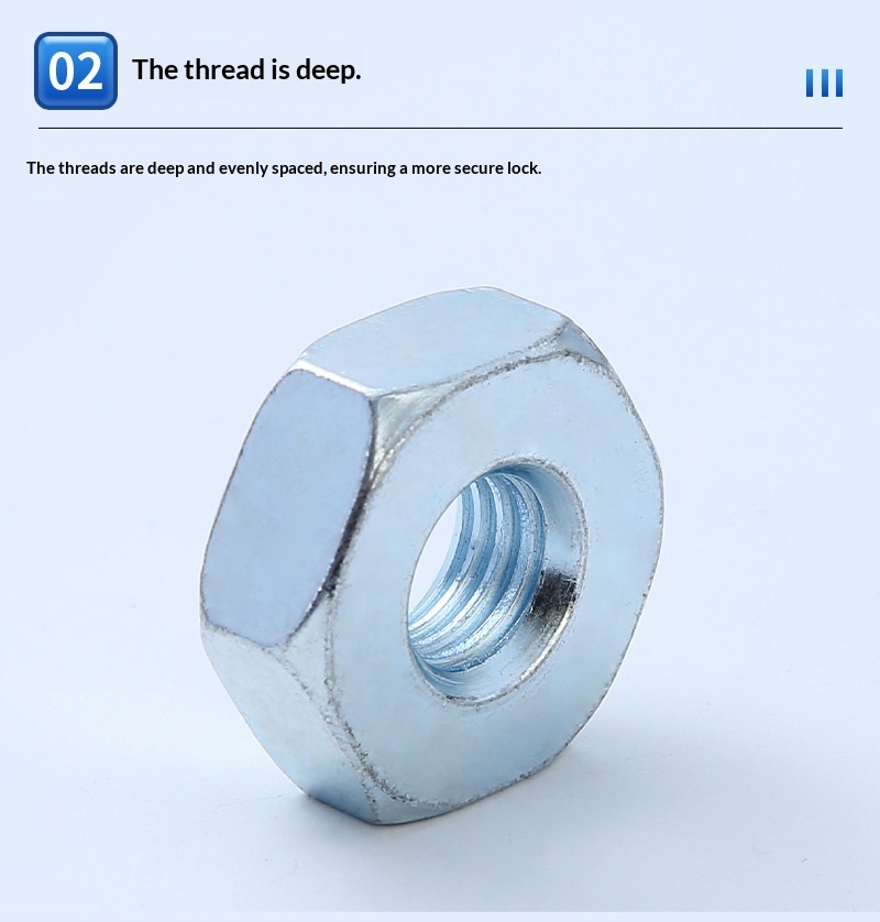 Made of high-quality carbon steel with galvanized anti-rust treatment, these wide hex nuts feature thickened and widened structure, high firmness, excellent corrosion resistance and long service life, suitable for long-term use in various harsh working environments.